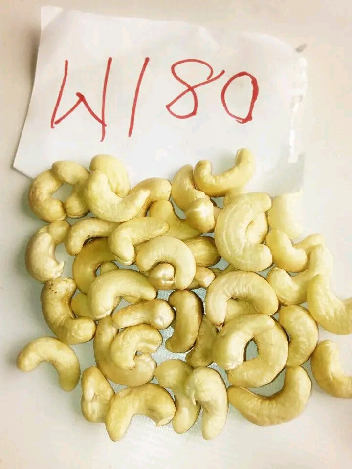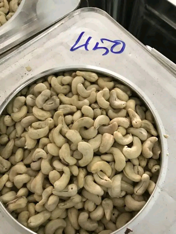 Premium processed cashew kernels. Grade W180-W450, moisture <5%, carefully processed and graded for export.