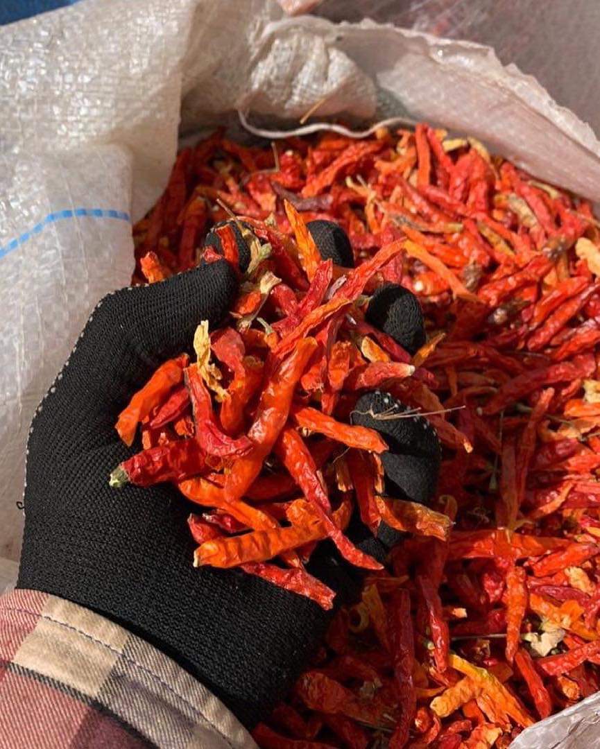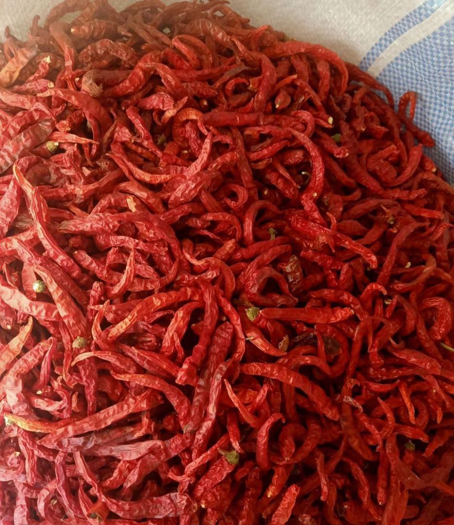 Organic dried chilli fingers from Nigeria. Length 5-7cm, moisture 10% max, sun-dried, vibrant red color.
